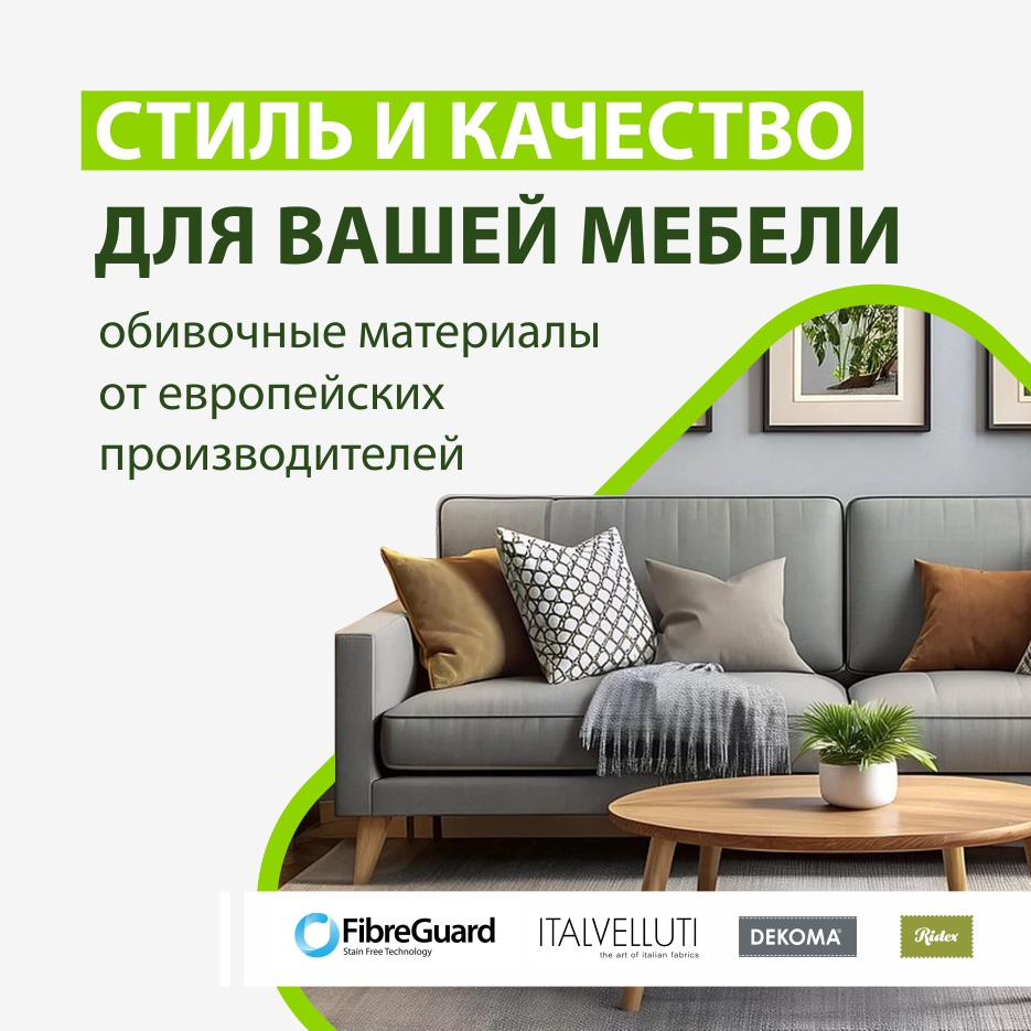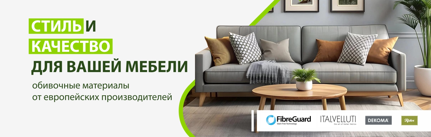 Мы предлагаем обширный ассортимент высококачественных материалов для создания и перетяжки мебели, а также для эксклюзивной отделки стен. В нашем каталоге представлены мебельные ткани — роскошный велюр, практичный жаккард, современный кожзаменитель, а также широкий выбор фурнитуры, наполнителей и расходных материалов.